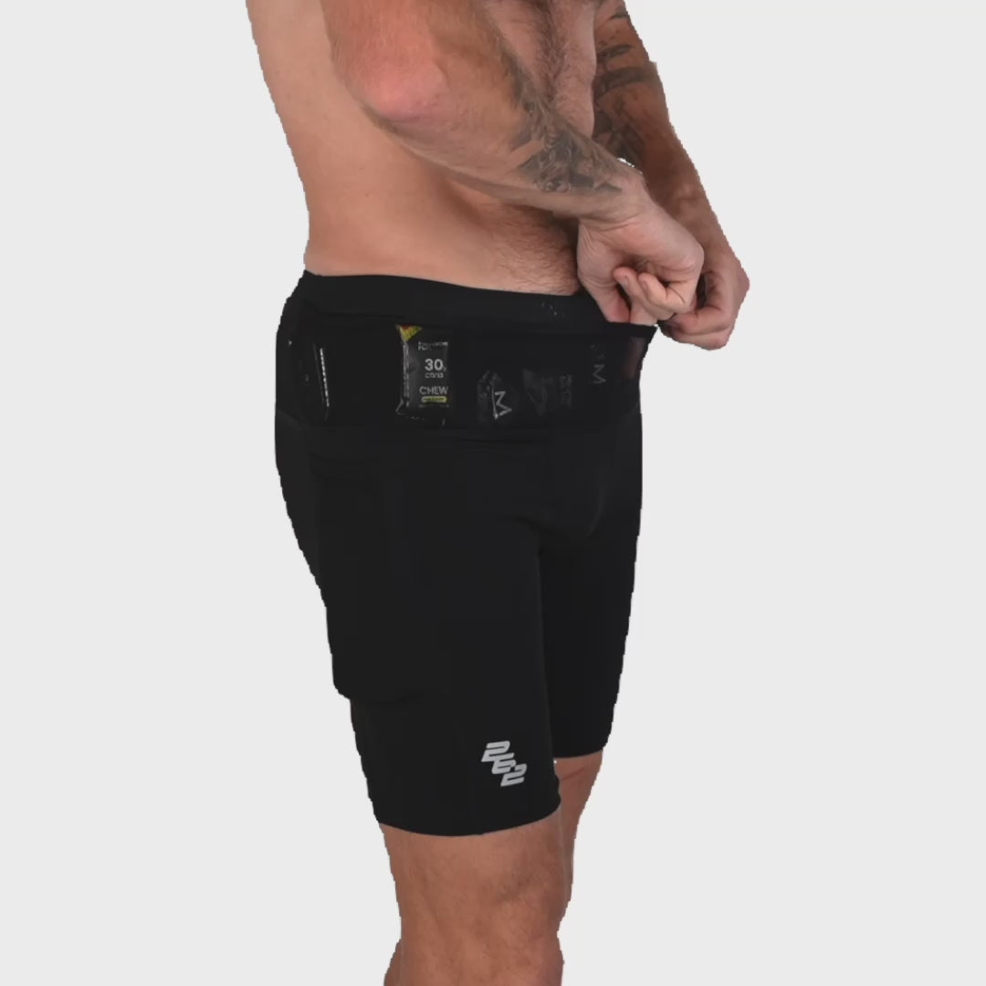 Better storage than I expected - you can definitely get 8+ gels in there. Phone pocket on the right is great. Zip pocket on the back useful. Took them for a first run - 30km with marathon pace - no slip, no chafe. They’re perfect. Wish I’d bought 2 pair 😂